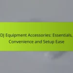 Essential accessories for DJs include tools that enhance performance and ensure smooth operation. Key items like a DJ laptop stand and a USB hub are vital for creating an efficient and organized setup.
